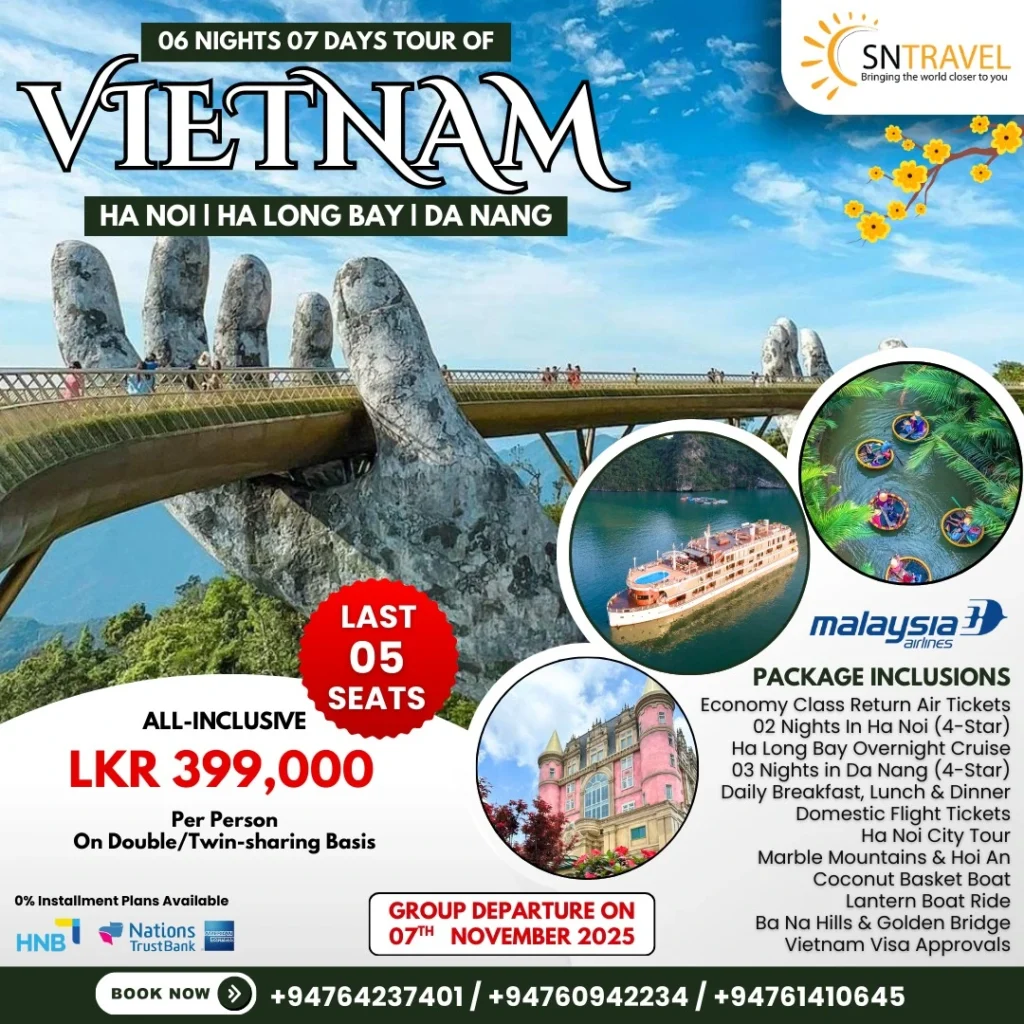 Exceeding expectations is a term we hear often, but rarely get to experience. Sanjana and SN travels was able to exceed expectations of mine by planned an unforgettable tour to Vietnam. Recommend his services to anybody who has less time in hand to plan your personal or corporate get aways out of SL.