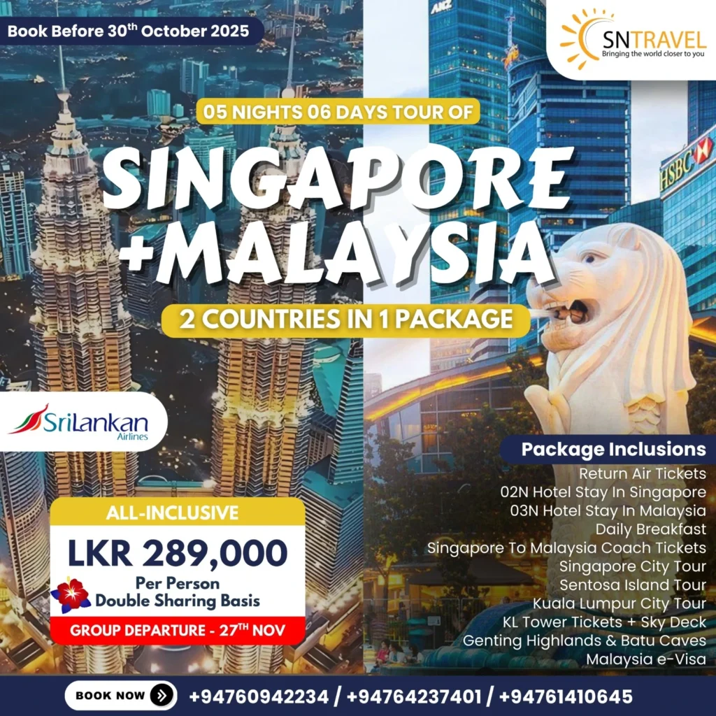 SN Travel (Pvt) Ltd is a travel agency located in Colombo, Sri Lanka with our own branch offices in Thailand aimed at providing the best deals for your dream vacation, complex business trips or a good deal on a random flight. We provide a wide range of tour packages to suit your requirements covering various destinations including Thailand, Malaysia, Singapore, Turkey, Dubai and many more!